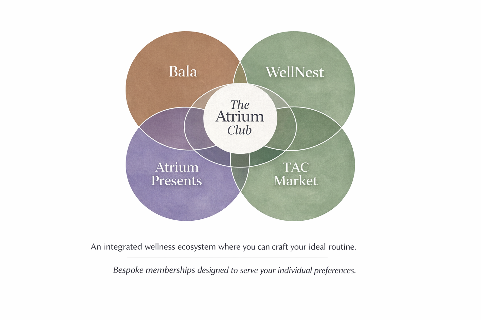 The Atrium Club will grow to include Bala, WellNest, Atrium Presents events, and TAC Market. Founding Members receive priority access as these open.